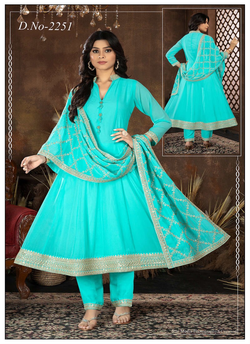 Elegant Party Wear: With their detailed work and flowy designs, these suits are also perfect for evening parties or grand celebrations.