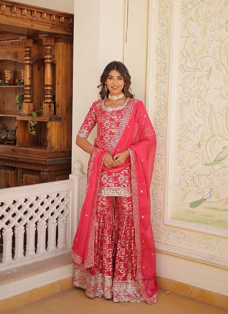 Elegant 3-piece gharara sets with designer kurtis and coordinated dupattas