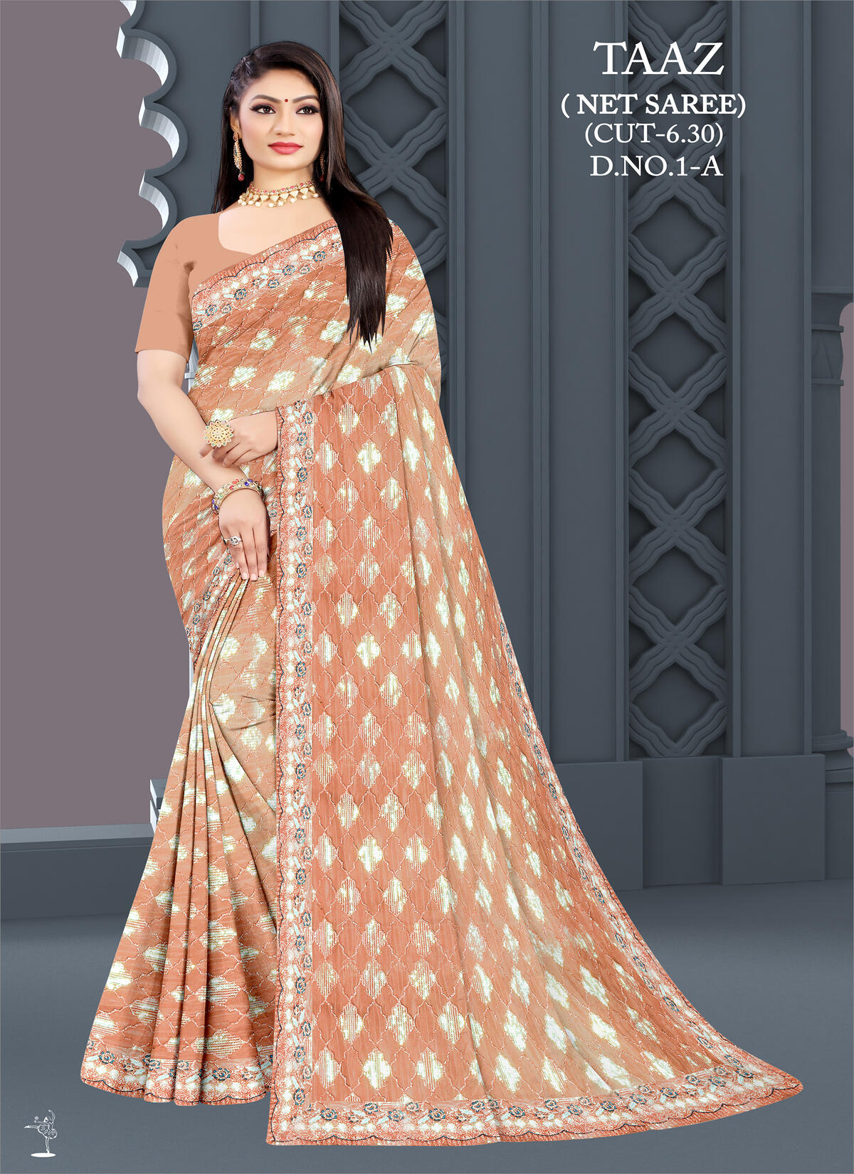 Ajmera Fashion Limited stands out as a premier wholesaler and manufacturer of exquisite net embroidery sarees in India. Our collection is tailored for retailers, resellers, and bulk buyers looking for high-quality sarees that blend elegance and style, making them perfect for weddings, parties, and festive occasions.