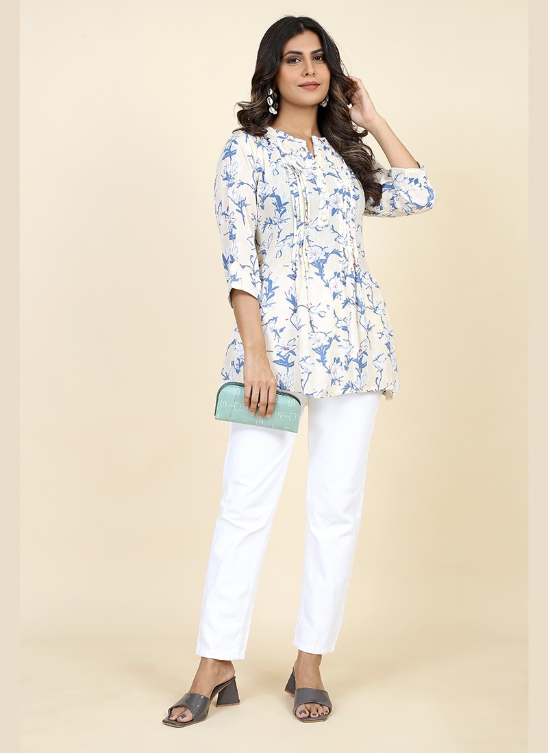 Short kurtis paired with matching pants, palazzos, or skirts