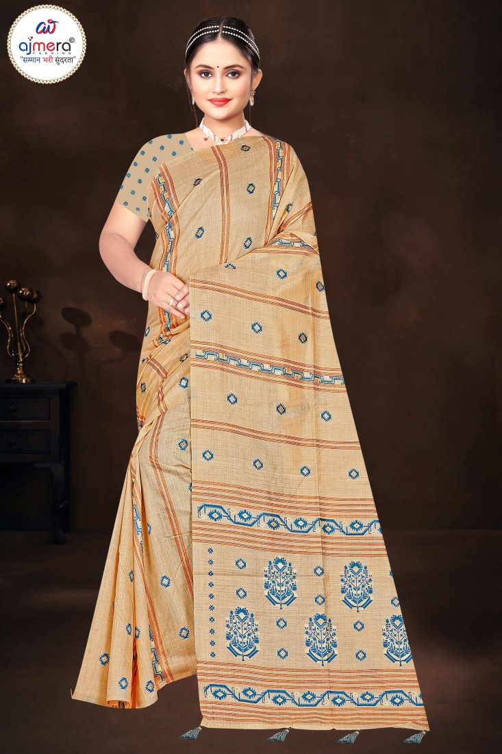 Embrace the blend of tradition and comfort with our Suti Chappa Cotton Saree. Crafted from premium Suti Chappa cotton, this saree is perfect for those who appreciate the soft, breathable fabric that offers both elegance and ease. Ideal for everyday wear as well as special occasions, the saree combines classic design elements with a comfortable, lightweight feel.